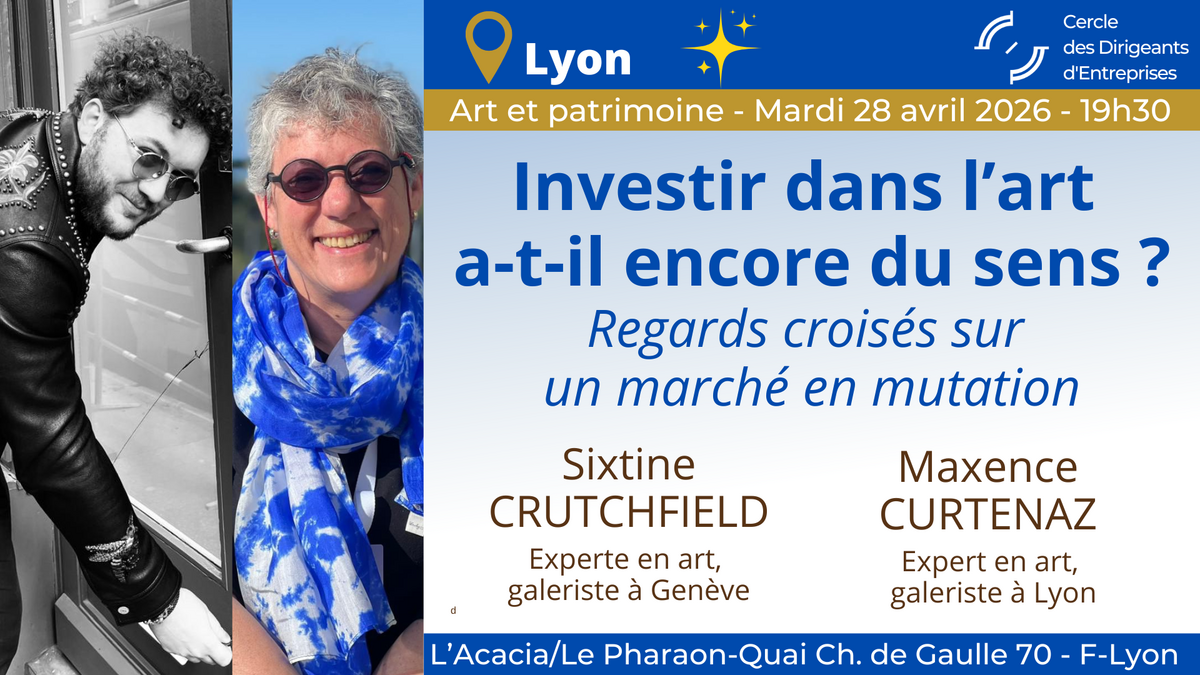 À l’occasion de sa conférence mensuelle, le CDE-Lyon propose d’explorer ces questions à travers une rencontre dédiée aux dynamiques actuelles du marché de l’art.