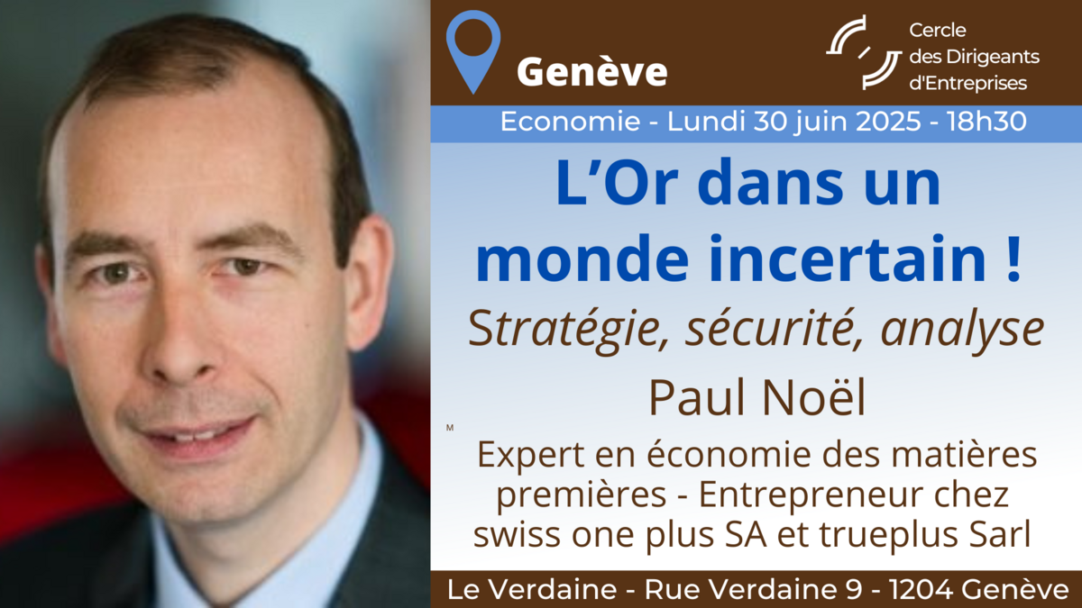 Paul Noël, expert reconnu en économie des matières premières et analyste indépendant, propose une lecture approfondie et accessible des dynamiques en jeu autour de l’or. À travers cette conférence, il interrogera la véritable nature de sa valeur en 2025 : entre réalité tangible et spéculation. Il mettra également en lumière les perspectives à long terme du métal précieux face à l’émergence de nouveaux paradigmes financiers, aux transformations géopolitiques et aux défis environnementaux.