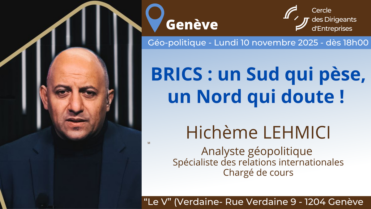 Entre élargissement du groupe, tensions géopolitiques et recompositions économiques, les BRICS semblent aujourd’hui à un tournant historique : alliance d’intérêts ou véritable alternative à l’ordre occidental ? Pour en débattre, nous accueillerons à nouveau Hichème Lehmici, géopolitologue, fin analyste des équilibres internationaux, qui nous aidera à faire le point sur la trajectoire des BRICS et les perspectives qui s’ouvrent à l’horizon 2030.
