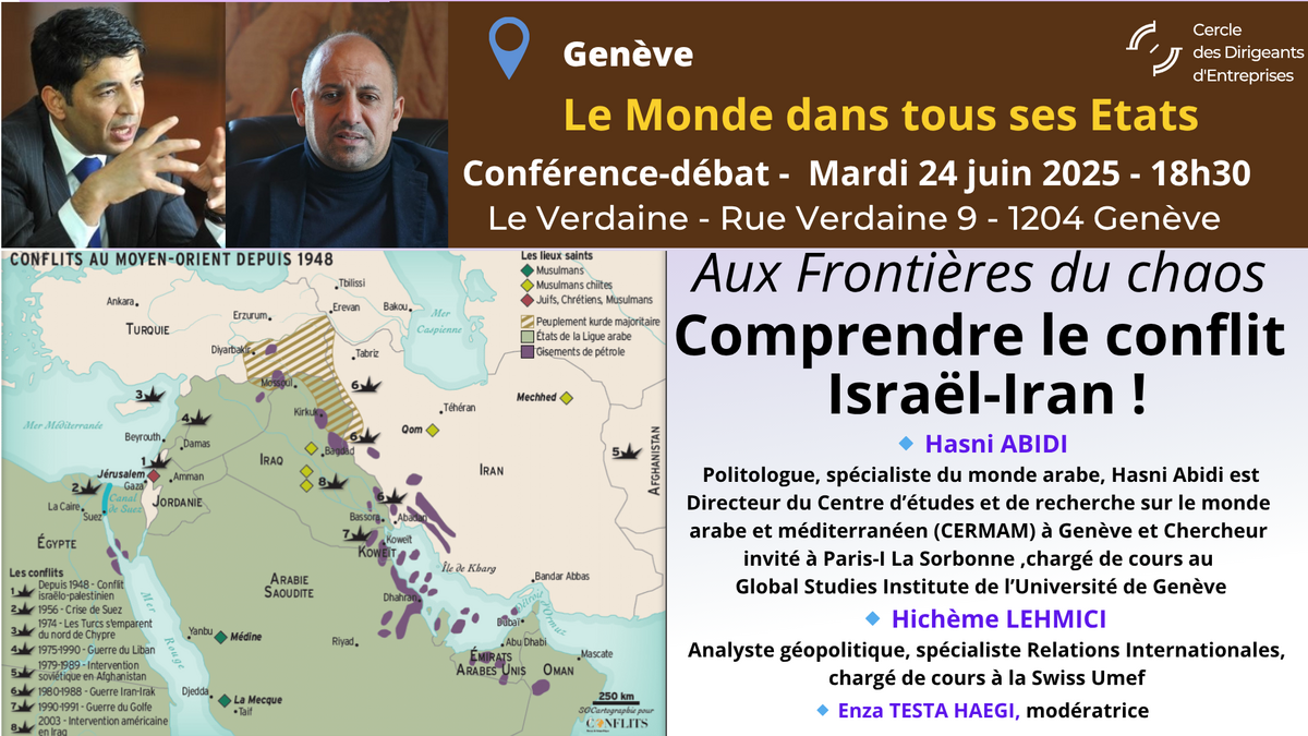 Alors que les tensions au Moyen-Orient ne cessent de s’intensifier, cette conférence-débat vise à offrir des clés de compréhension sur les ressorts géopolitiques, idéologiques et stratégiques qui structurent le conflit latent – et parfois ouvert – entre Israël et l’Iran. Un affrontement aux implications régionales majeures, dont les répercussions touchent aussi bien la sécurité internationale que les équilibres diplomatiques globaux.