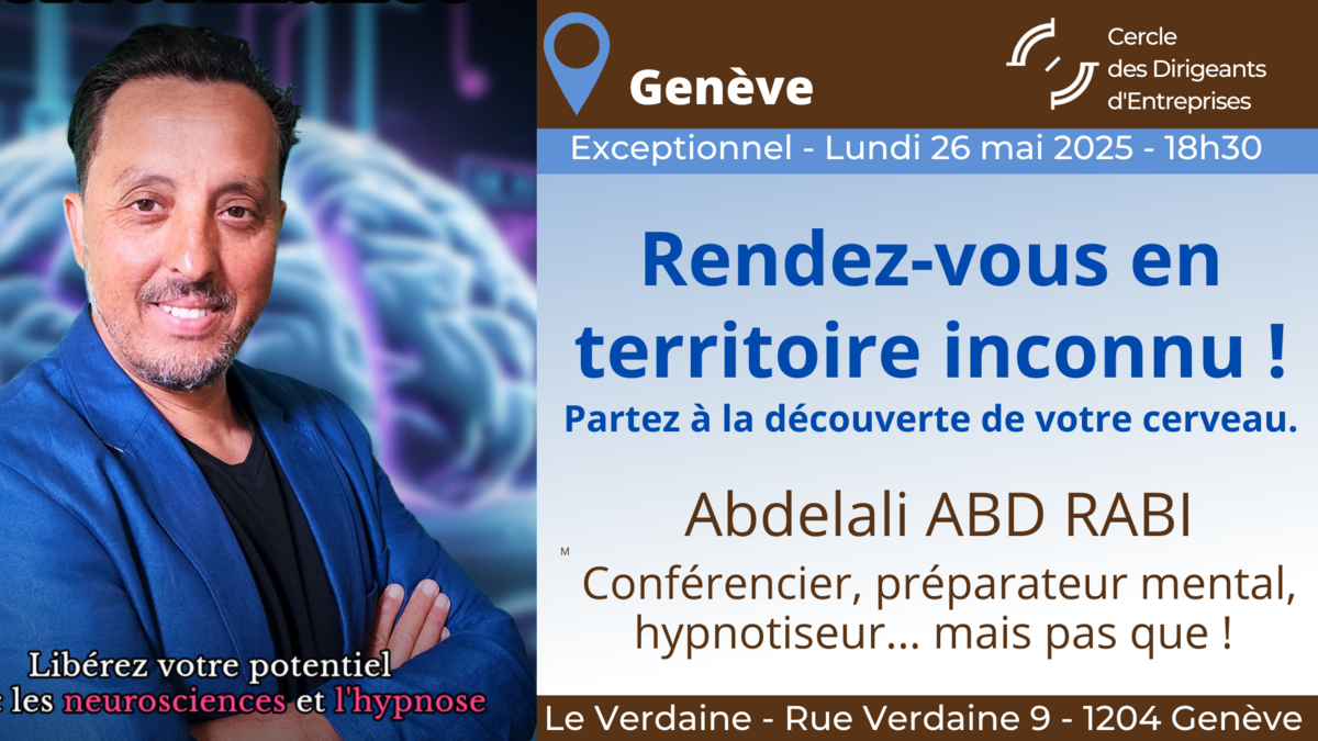 C’est avec une joie toujours renouvelée que nous accueillons à nouveau Abdelali, notre conférencier aussi passionnant qu’"hypnotique". Malgré un agenda surbooké – entre entreprises internationales, sportifs de haut niveau, managers sous pression et même… quelques célébrités en quête d’alignement – il trouve (miraculeusement ?) le temps de revenir parmi nous. Mais chut… ne le criez pas trop fort, il parait qu’il vit sur le même fuseau horaire que nous : 24 heures par jour !