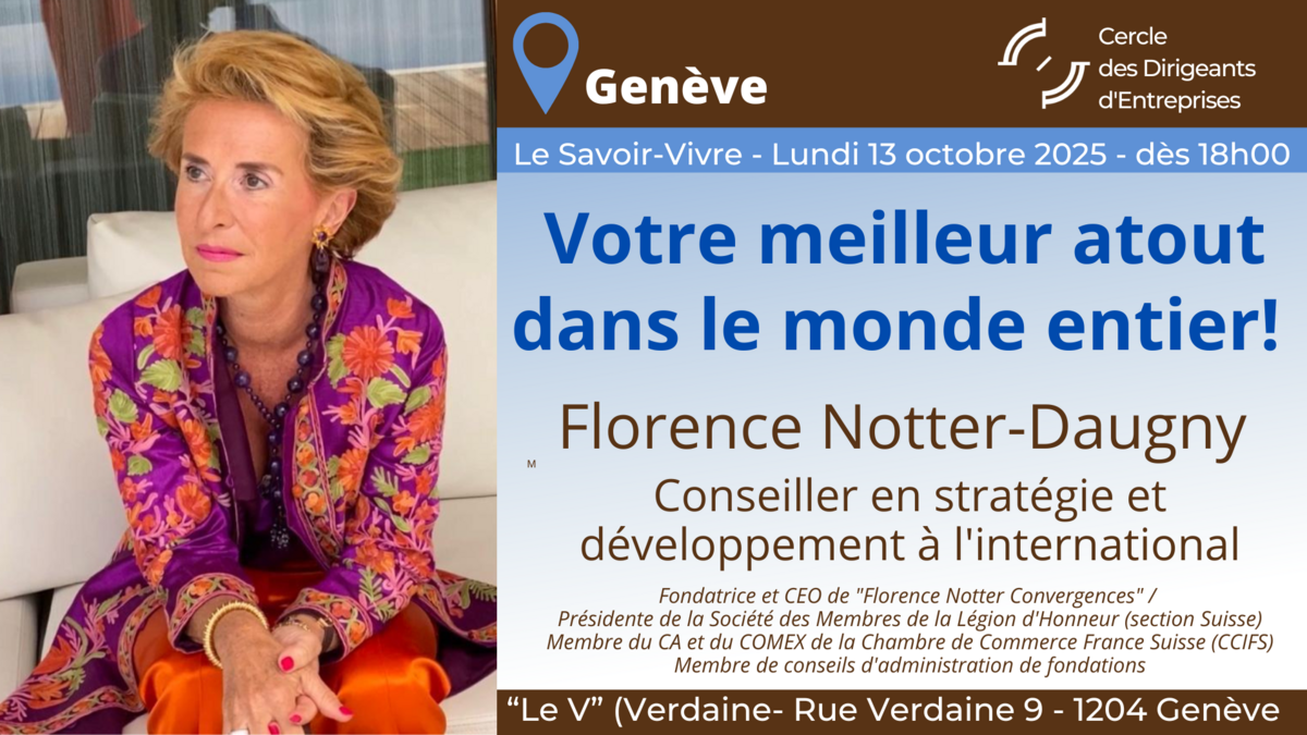 Florence Notter-Daugny, héritière de l’Académie du Savoir-Vivre fondée par Nadine de Rothschild, partagera avec nous son expertise unique sur l’art de maîtriser les codes, les usages et les subtilités du protocole, en toutes circonstances et sur tous les continents.