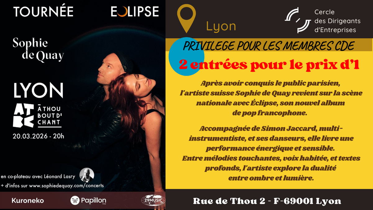 CADEAU PRIVILEGE POUR LES MEMBRES DU CDE : 2 billets pour le prix d'1 -