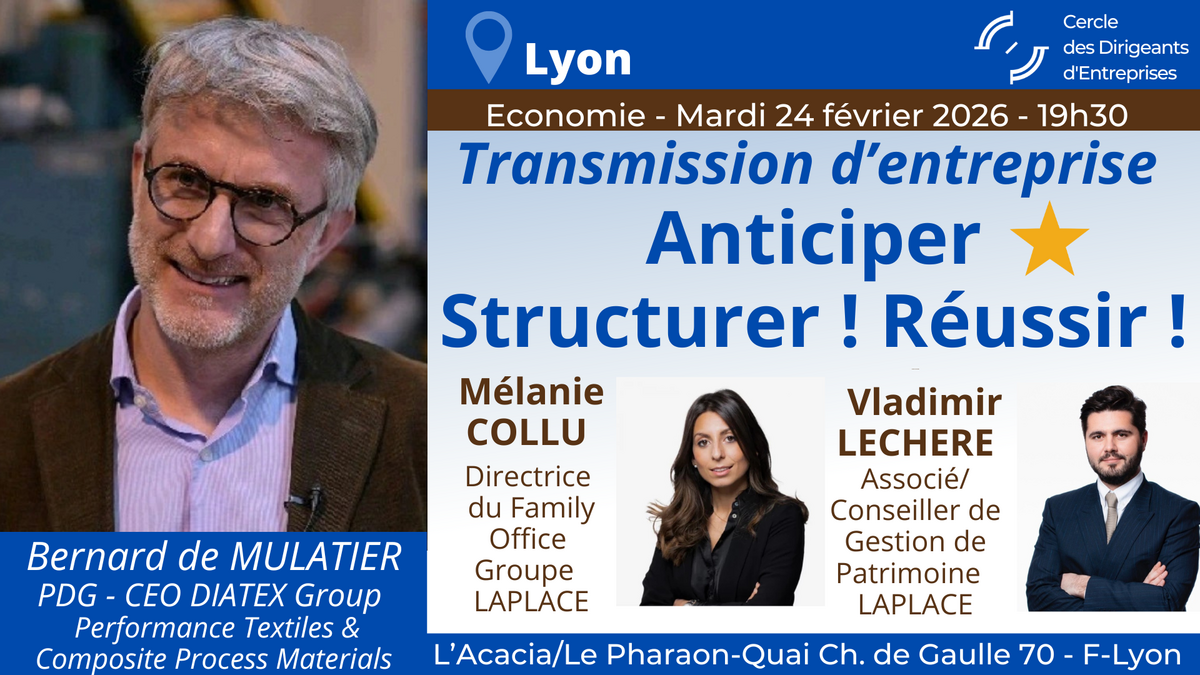 Dans un second temps, la conférence prendra une dimension très concrète avec le témoignage de Bernard de Mulatier, PDG du DIATEX Group, qui a accepté de se prêter à l’exercice en partageant un cas réel de transmission actuellement en cours.