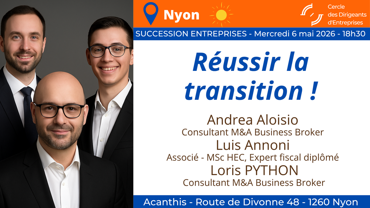 Loris Python – Business Broker : Loris Python conseille les dirigeants dans toutes les phases de transmission d’entreprise, de la préparation stratégique à la négociation finale. Grâce à sa connaissance du marché et des attentes des acquéreurs, il accompagne ses clients avec une approche pragmatique et orientée résultats.