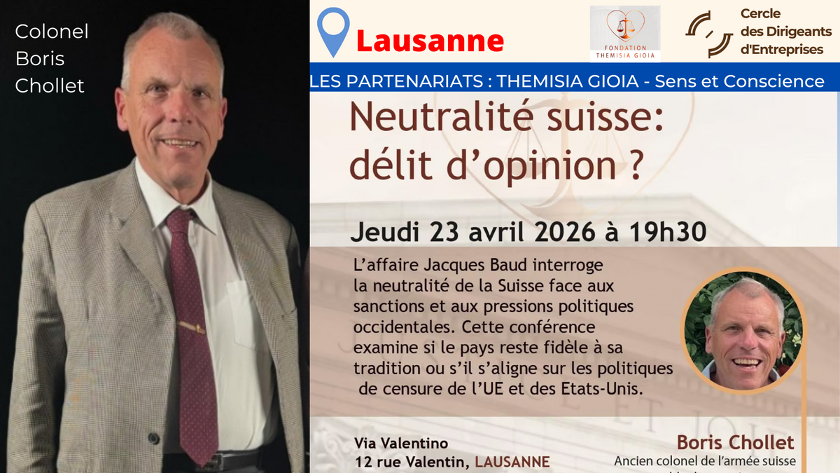 L’affaire Jacques Baud agit ici comme un révélateur. Au-delà d’un cas particulier, elle invite à s’interroger sur des questions essentielles : la Suisse reste-t-elle fidèle à sa tradition de neutralité, d’indépendance et de médiation ? Ou glisse-t-elle vers une forme d’alignement sur les positions de l’Union européenne et des États-Unis ? Et dans ce contexte, la liberté d’opinion peut-elle encore s’exercer pleinement lorsqu’elle s’écarte du récit dominant ?